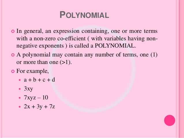 Algebraic expressions and identities class 8 ppt. Created by Alex W. Students and parents can download free a collection of all study material issued by various best schools in India. The expression in one variable contains only one type of variable.