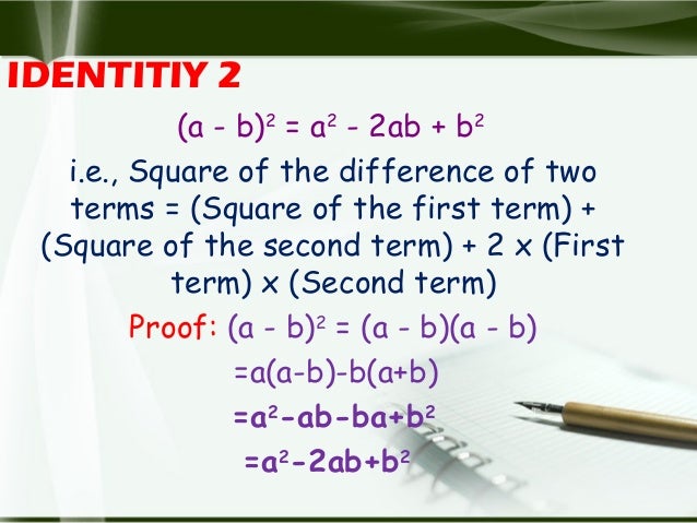 Soren Class Viii-d 2. A 2 b 2 where a5 b3. Expressions Identities Formulae Equations - Expressions Identities Formulae Equations The following s show examples of many common and sometimes important expressions identities formulae and equations.