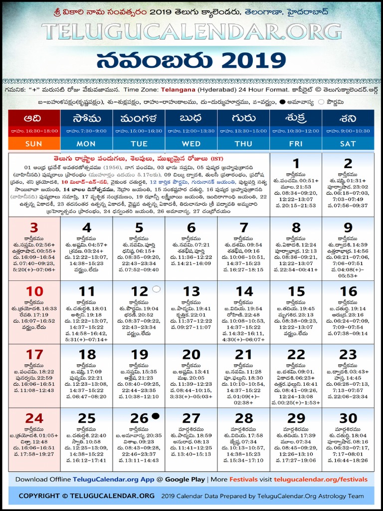 Telangana Telugu Calendar 2019 November Pdf Pdf