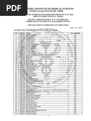 Aiims Pg Result January 2017 Session Roll Number Wise Pdf
