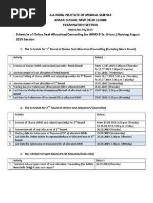 Counselling Schedule Format B Sc H Nsg Pdf