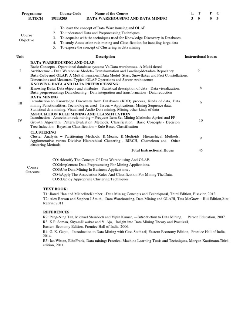 19it5205 Dwm Syllabus Pdf Cluster Analysis Data Warehouse